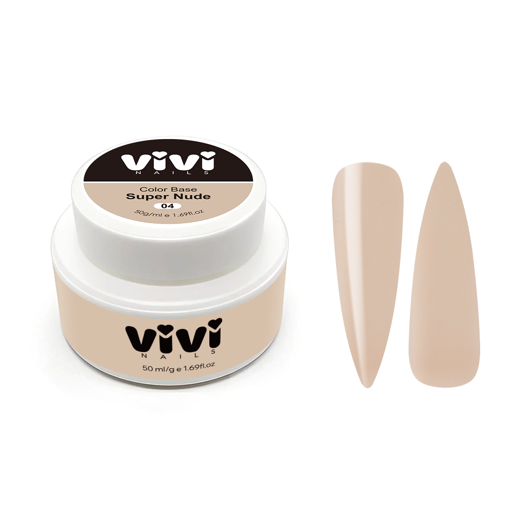 Cover base Super nude 04 50ml. es base rígida para nivelación de la viscosidad media espesa. Ideal para refuerzo de uñas naturales. Mantiene uñas impecables hasta 3-4 semanas sin desprendimientos ni grietas. El tono beige de muy buena pigmentación que cubre las imperfecciones de la uña natural. Sirve para las uñas normales, débiles o frágiles. Tiene bajo acidez Ph 6,5. Tiempo de secado rápido: 60 segundos en lámpara LED de 48W.