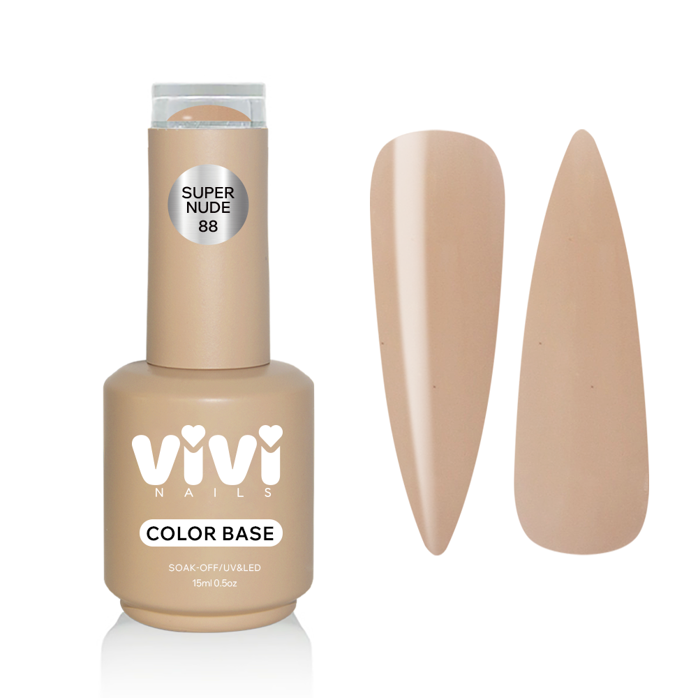 Cover base Super nude 88 es Base rígida autonivelante de textura media espesa, ideal para refuerzo y nivelación de uñas naturales. Mantiene uñas impecables hasta 3-4 semanas sin desprendimientos ni grietas. El tono beige de muy buena pigmentación que cubre las imperfecciones de la uña natural, color intenso, perfecta para manicura francesa y looks elegantes. Sirve para las uñas normales , débiles o frágiles. Tiene bajo acidez Ph 6,5. Tamaño 15ml. Tiempo de secado rápido: 60 segundos en lámpara LED de 48W.