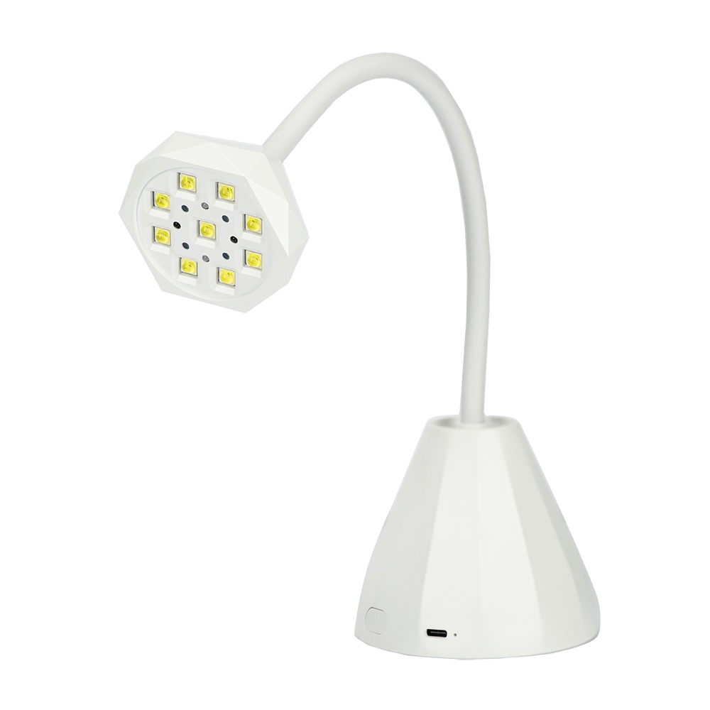 Su diseño tipo linterna de pie permite enfocar la luz directamente sobre la zona de trabajo sin ocupar espacio en la mesa y manteniendo libre el área de trabajo. Este formato facilita el acceso a las uñas desde distintos ángulos y posiciones, mejorando la ergonomía y reduciendo la fatiga en manos y muñecas durante sesiones prolongadas.